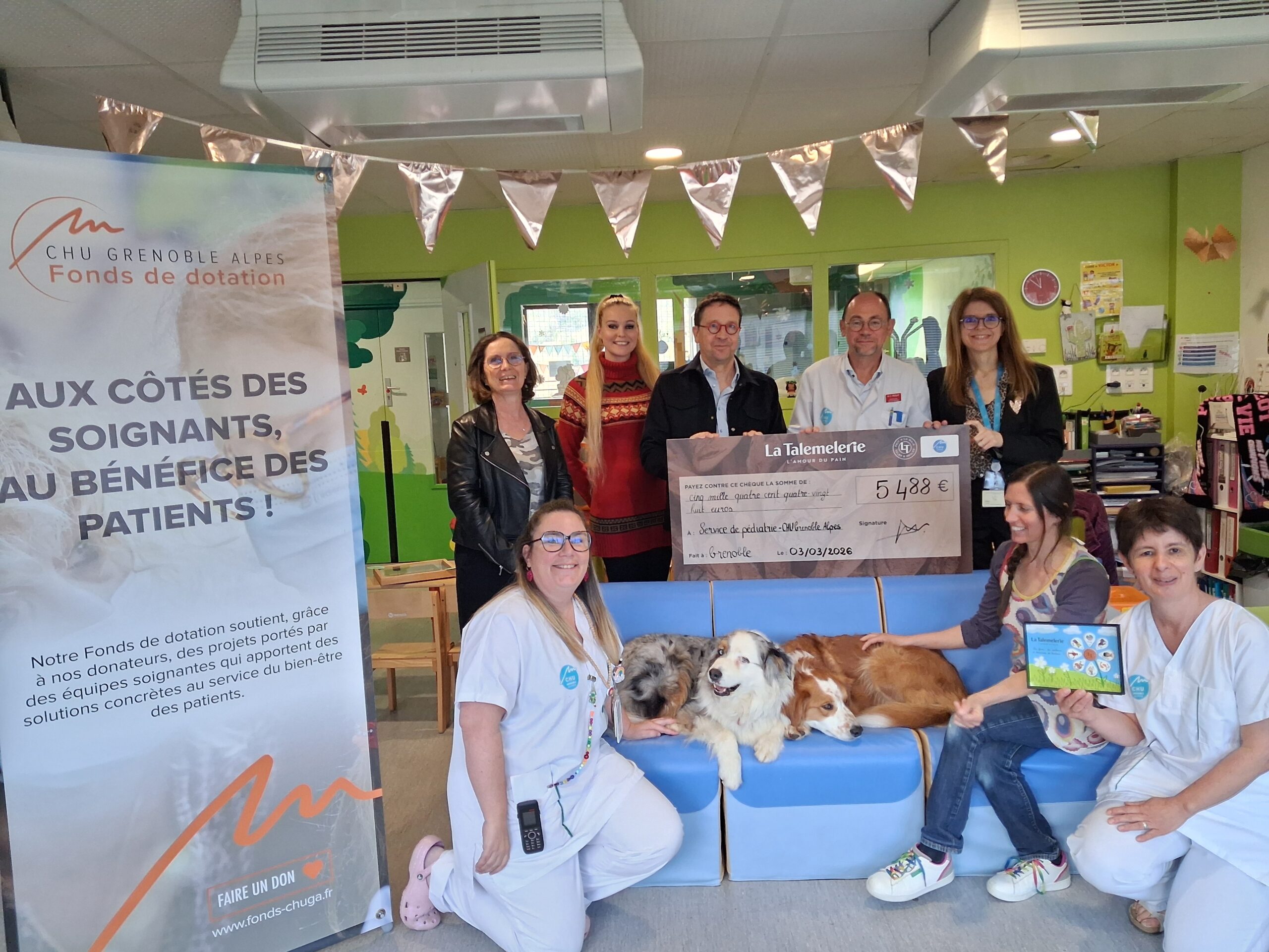 Ce mardi 3 mars 2026, La Talemelerie est venue remettre le chèque des galettes solidaires, une initiative qui a permis de collecter 5488€ au profit du projet de médiation animale soutenu par le Fonds de dotation du CHU Grenoble Alpes.